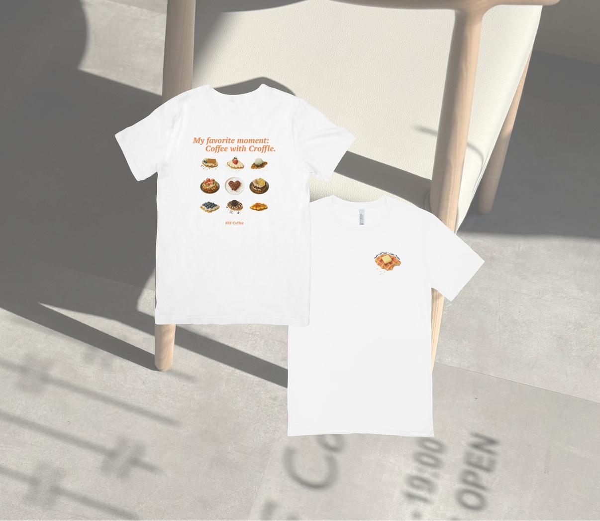 カラフルなクロッフルたちがTシャツいっぱいに広がって可愛さ満点♡